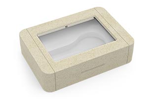 Made of an eco-hybrid material that contains 40% fibrous bamboo to reduce the use of plastic in its composition. This box has a transparent window to show your promotional product. The lid is held tightly by two small magnets. A great presentation idea for your next event. |